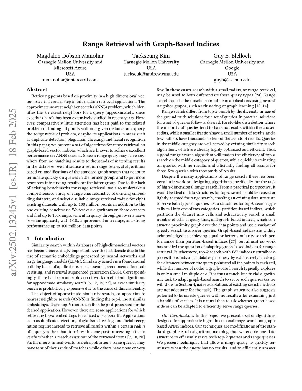 Retrieving points based on proximity in a high-dimensional vector space is a crucial step in information retrieval applications. The approximate nearest neighbor search (ANNS) problem, which identifies the nearest neighbors for a query, has been extensively studied in recent years. However, comparatively little attention has been paid to the related problem of finding all points within a given distance of a query, the range retrieval problem, despite its applications in areas such as duplicate detection, plagiarism checking, and facial recognition. In this paper, we present new techniques for range retrieval on graph-based vector indices, which are known to achieve excellent performance on ANNS queries. Since a range query may have anywhere from no matching results to thousands of matching results in the database, we introduce a set of range retrieval algorithms based on modifications of the standard graph search that adapt to terminate quickly on queries in the former group, and to put more resources into finding results for the latter group. Due to the lack of existing benchmarks for range retrieval, we also undertake a comprehensive study of range characteristics of existing embedding datasets, and select a suitable range retrieval radius for eight existing datasets with up to 1 billion points in addition to one existing benchmark. We test our algorithms on these datasets, and find up to 100x improvement in query throughput over a standard graph search and the FAISS-IVF range search algorithm. We also find up to 10x improvement over a previously suggested modification of the standard beam search, and strong performance up to 1 billion data points.