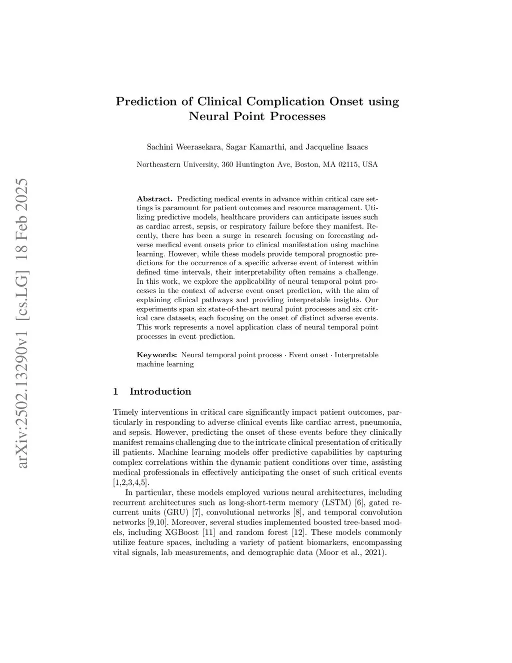 Prediction of Clinical Complication Onset using Neural Point Processes