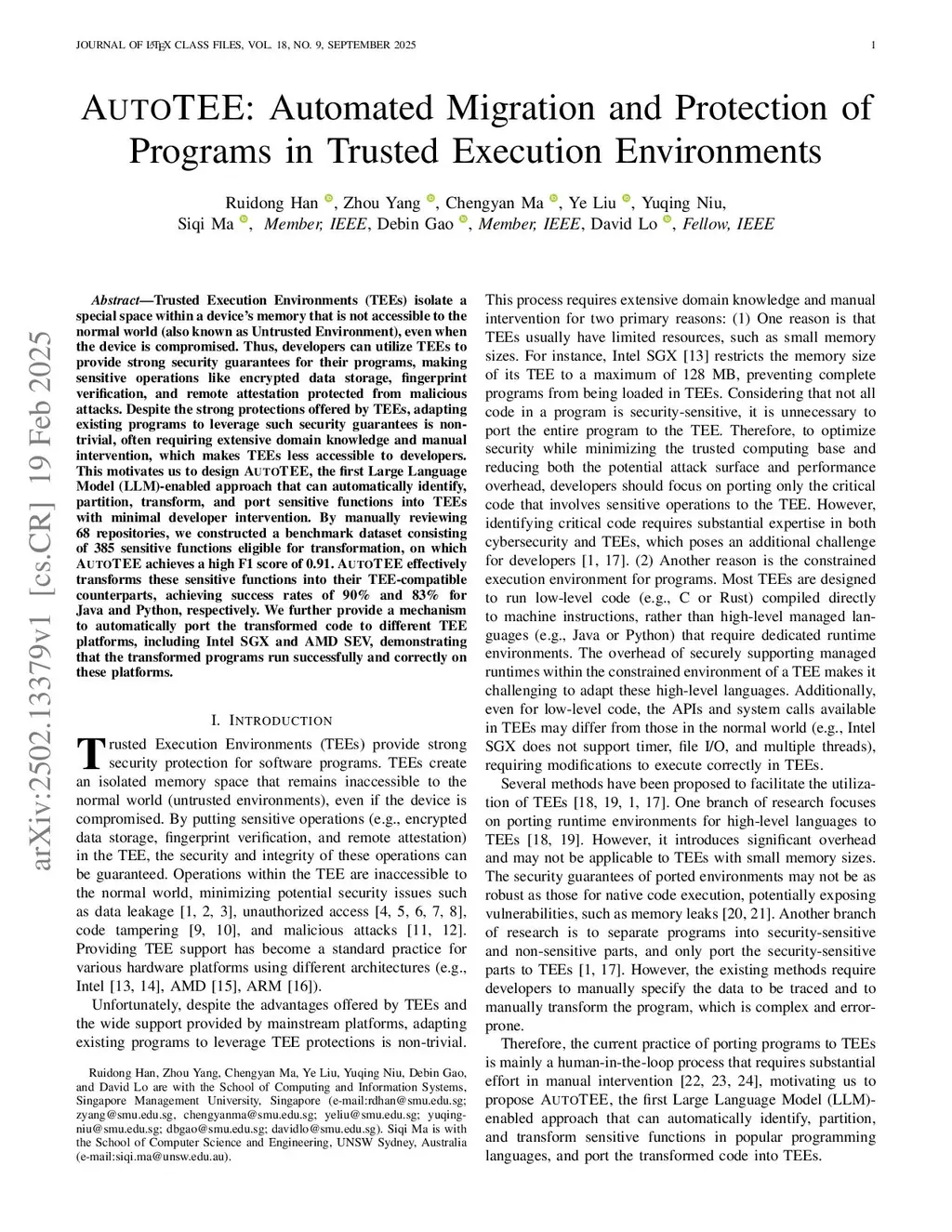 Trusted Execution Environments (TEEs) isolate a special space within a device memory that is not accessible to the normal world (also known as the untrusted environment), even when the device is compromised. Therefore, developers can utilize TEEs to provide robust security guarantees for their programs, protecting sensitive operations, such as encrypted data storage, fingerprint verification, and remote attestation, from software-based attacks. Despite the robust protections offered by TEEs, adapting existing programs to leverage such security guarantees is challenging, often requiring extensive domain knowledge and manual intervention, which makes TEEs less accessible to developers. This motivates us to design AUTOTEE, the first Large Language Model (LLM) enabled approach that can automatically identify, transform, and port functions containing sensitive operations into TEEs with minimal developer intervention. By manually reviewing 68 repositories, we constructed a benchmark dataset consisting of 385 sensitive functions eligible for transformation, on which AUTOTEE achieves a F1 score of 0.94 on Java and 0.87 on Python. AUTOTEE effectively transforms these sensitive functions into TEE-compatible versions, achieving success rates of 91.8% and 84.3% for Java and Python, respectively, when using GPT-4o.