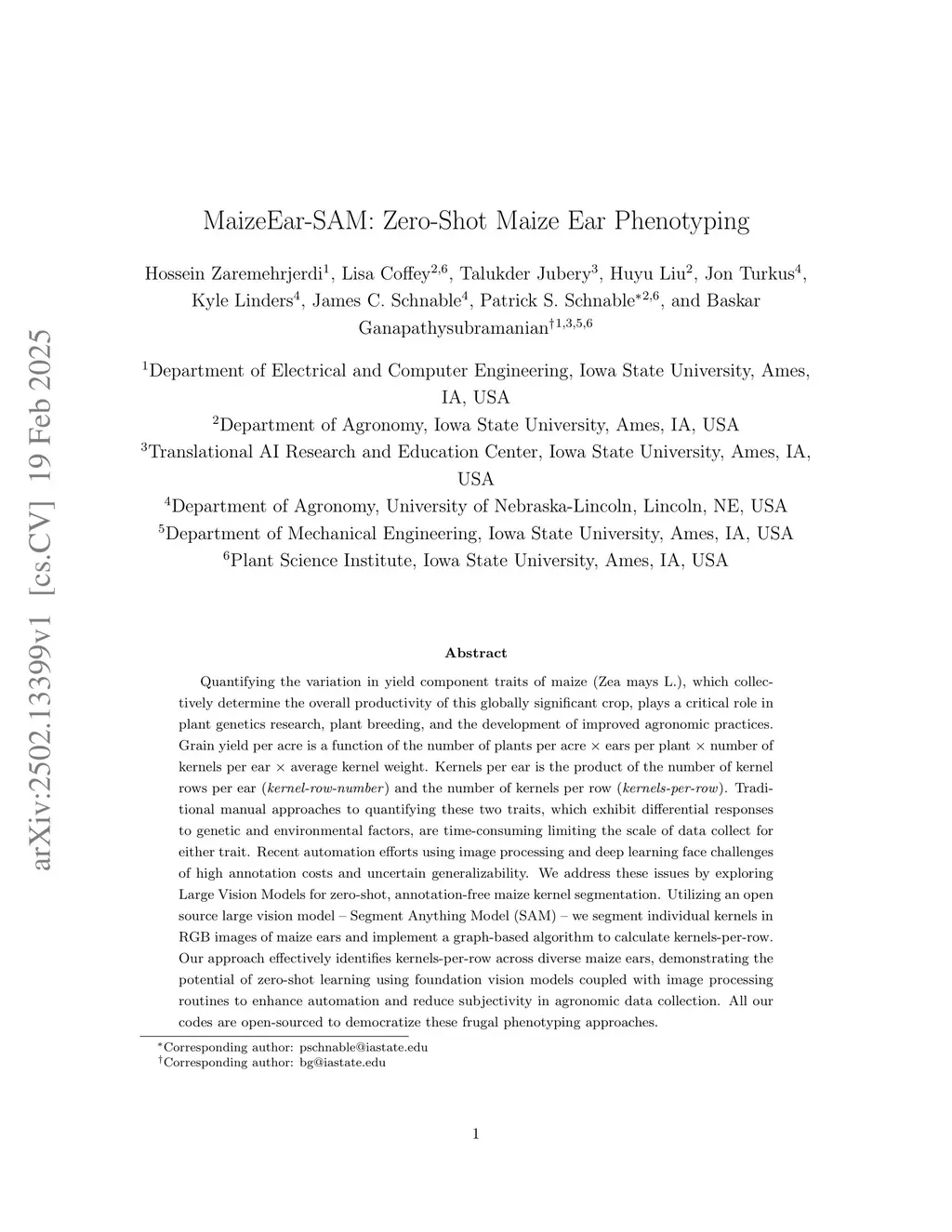 MaizeEar-SAM: Zero-Shot Maize Ear Phenotyping