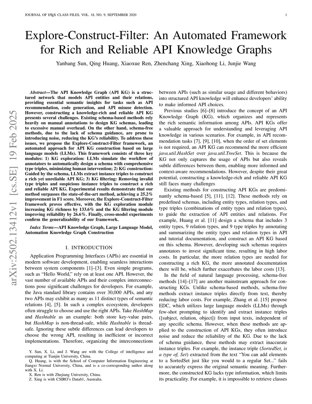 Explore-Construct-Filter: An Automated Framework for Rich and Reliable API Knowledge Graph Construction