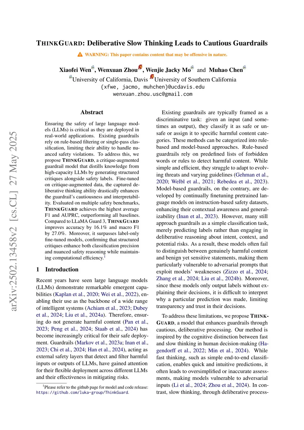 ThinkGuard: Deliberative Slow Thinking Leads to Cautious Guardrails