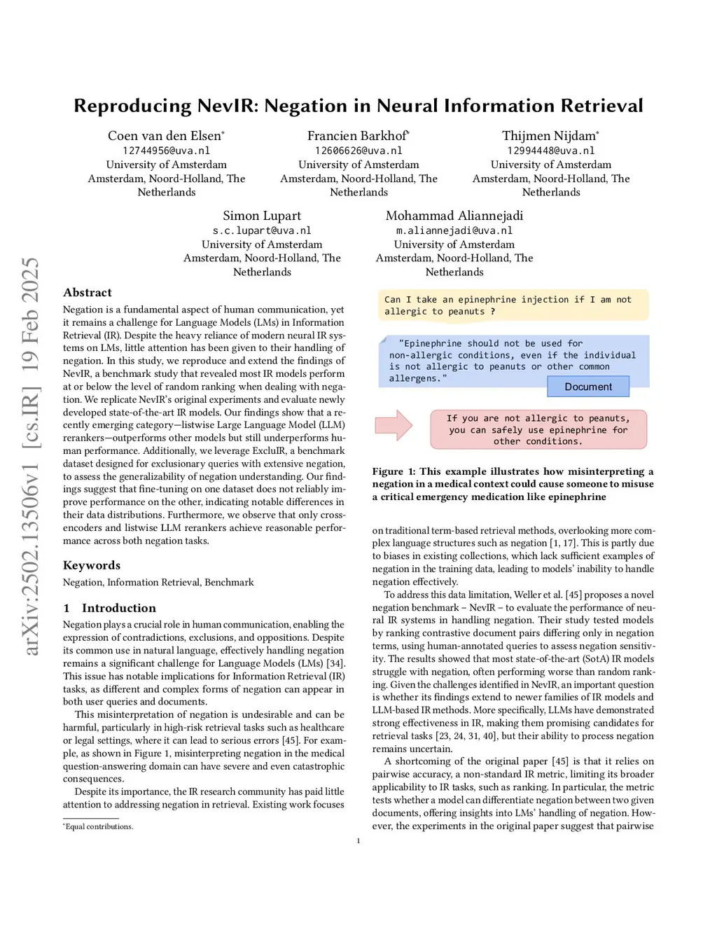 Reproducing NevIR: Negation in Neural Information Retrieval