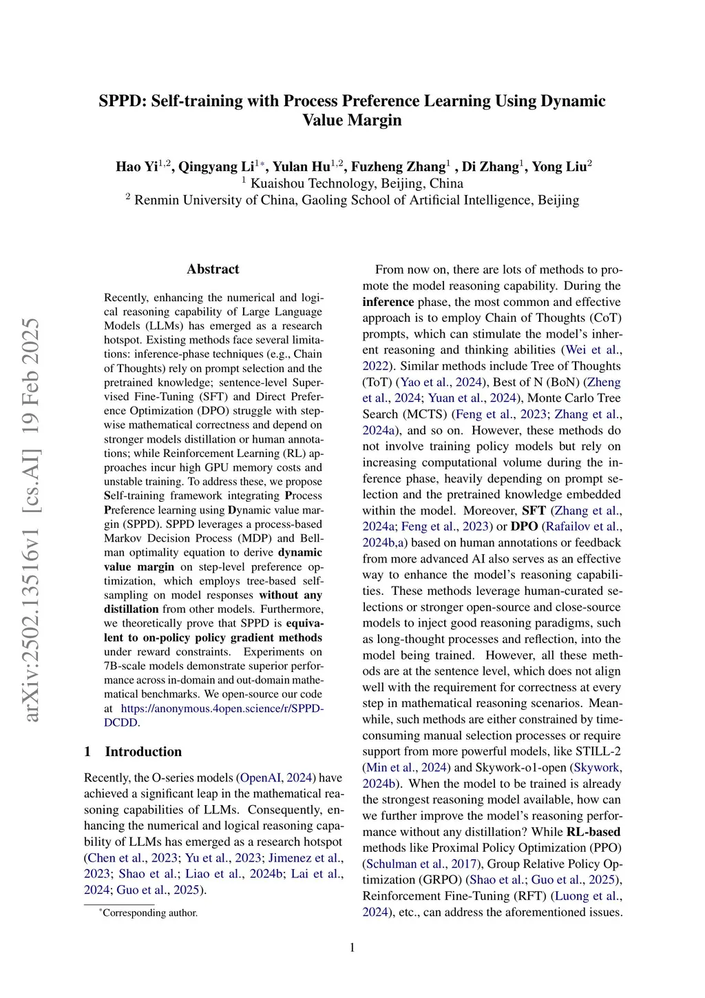 SPPD: Self-training with Process Preference Learning Using Dynamic Value Margin