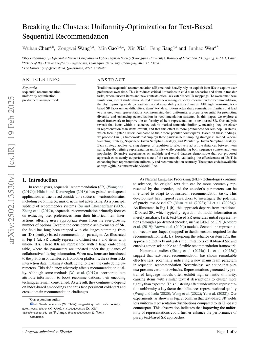 Breaking the Clusters: Uniformity-Optimization for Text-Based Sequential Recommendation