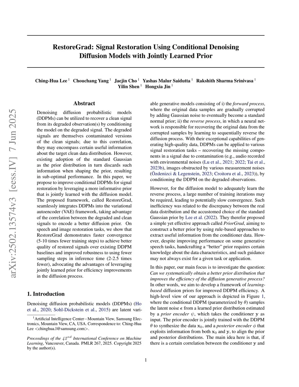 RestoreGrad: Signal Restoration Using Conditional Denoising Diffusion Models with Jointly Learned Prior