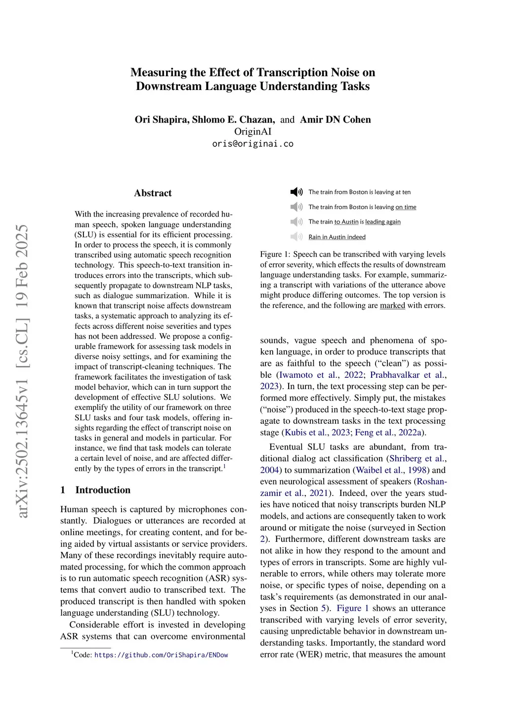 Measuring the Effect of Transcription Noise on Downstream Language Understanding Tasks