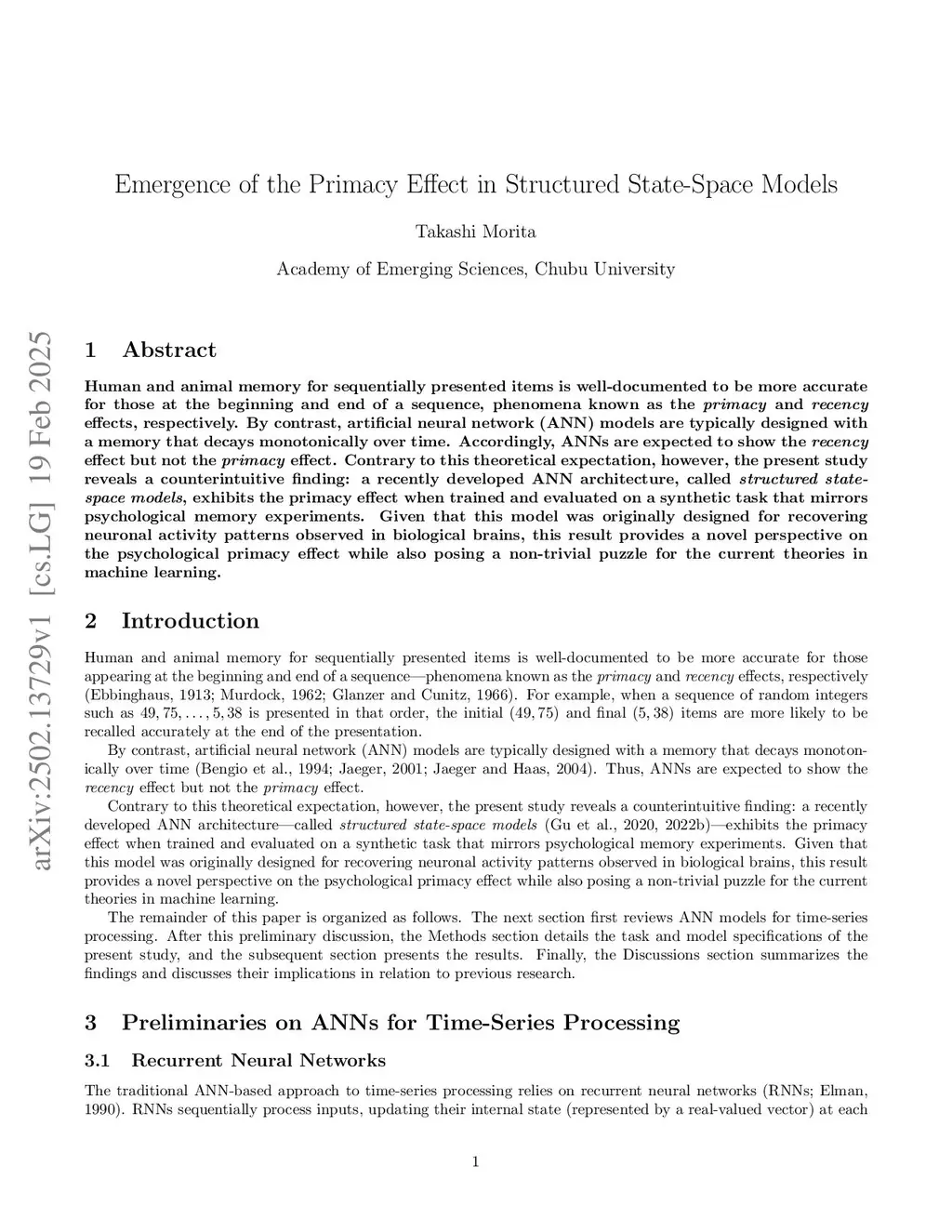 Emergence of the Primacy Effect in Structured State-Space Models