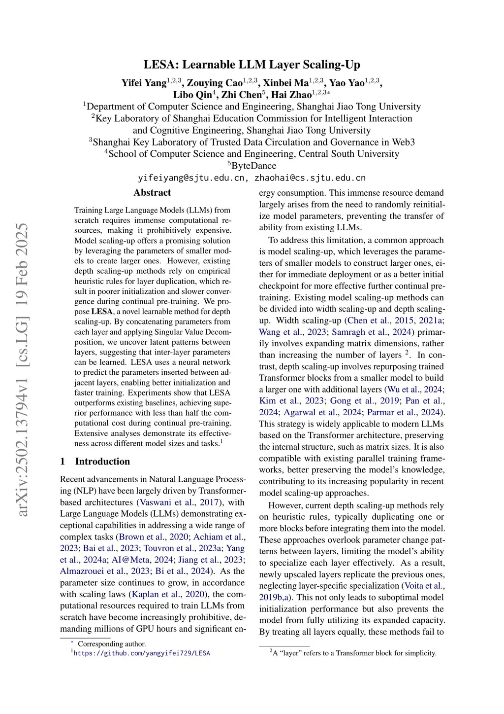 LESA: Learnable LLM Layer Scaling-Up