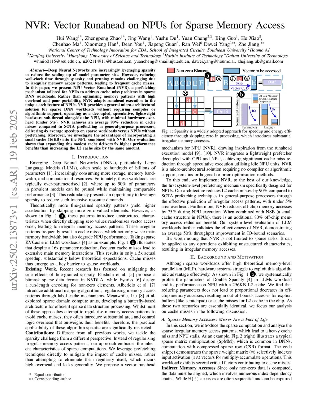 Deep Neural Networks are increasingly leveraging sparsity to reduce the scaling up of model parameter size. However, reducing wall-clock time through sparsity and pruning remains challenging due to irregular memory access patterns, leading to frequent cache misses. In this paper, we present NPU Vector Runahead (NVR), a prefetching mechanism tailored for NPUs to address cache miss problems in sparse DNN workloads. Rather than optimising memory patterns with high overhead and poor portability, NVR adapts runahead execution to the unique architecture of NPUs. NVR provides a general micro-architectural solution for sparse DNN workloads without requiring compiler or algorithmic support, operating as a decoupled, speculative, lightweight hardware sub-thread alongside the NPU, with minimal hardware overhead (under 5%). NVR achieves an average 90% reduction in cache misses compared to SOTA prefetching in general-purpose processors, delivering 4x average speedup on sparse workloads versus NPUs without prefetching. Moreover, we investigate the advantages of incorporating a small cache (16KB) into the NPU combined with NVR. Our evaluation shows that expanding this modest cache delivers 5x higher performance benefits than increasing the L2 cache size by the same amount.