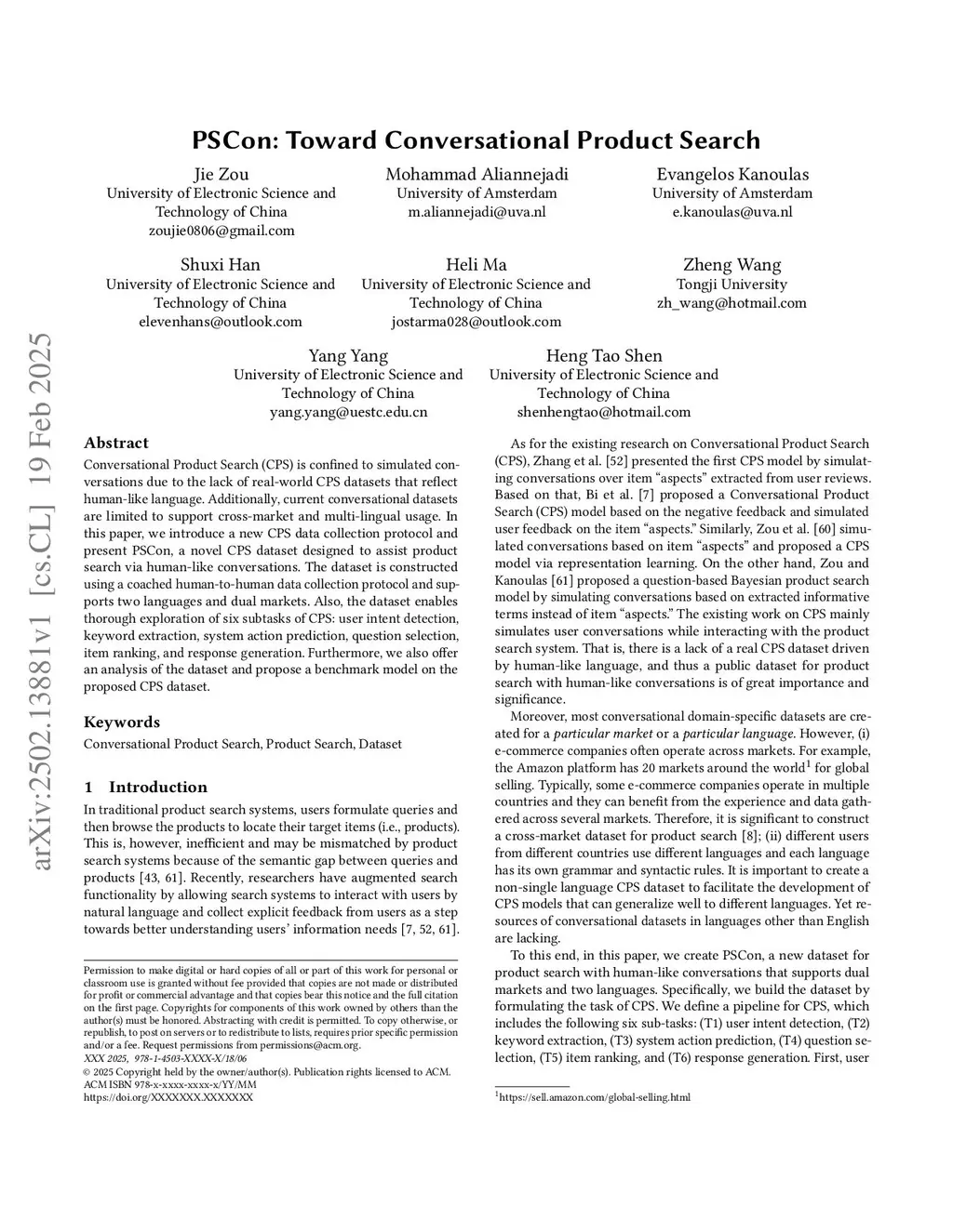 PSCon: Product Search Through Conversations