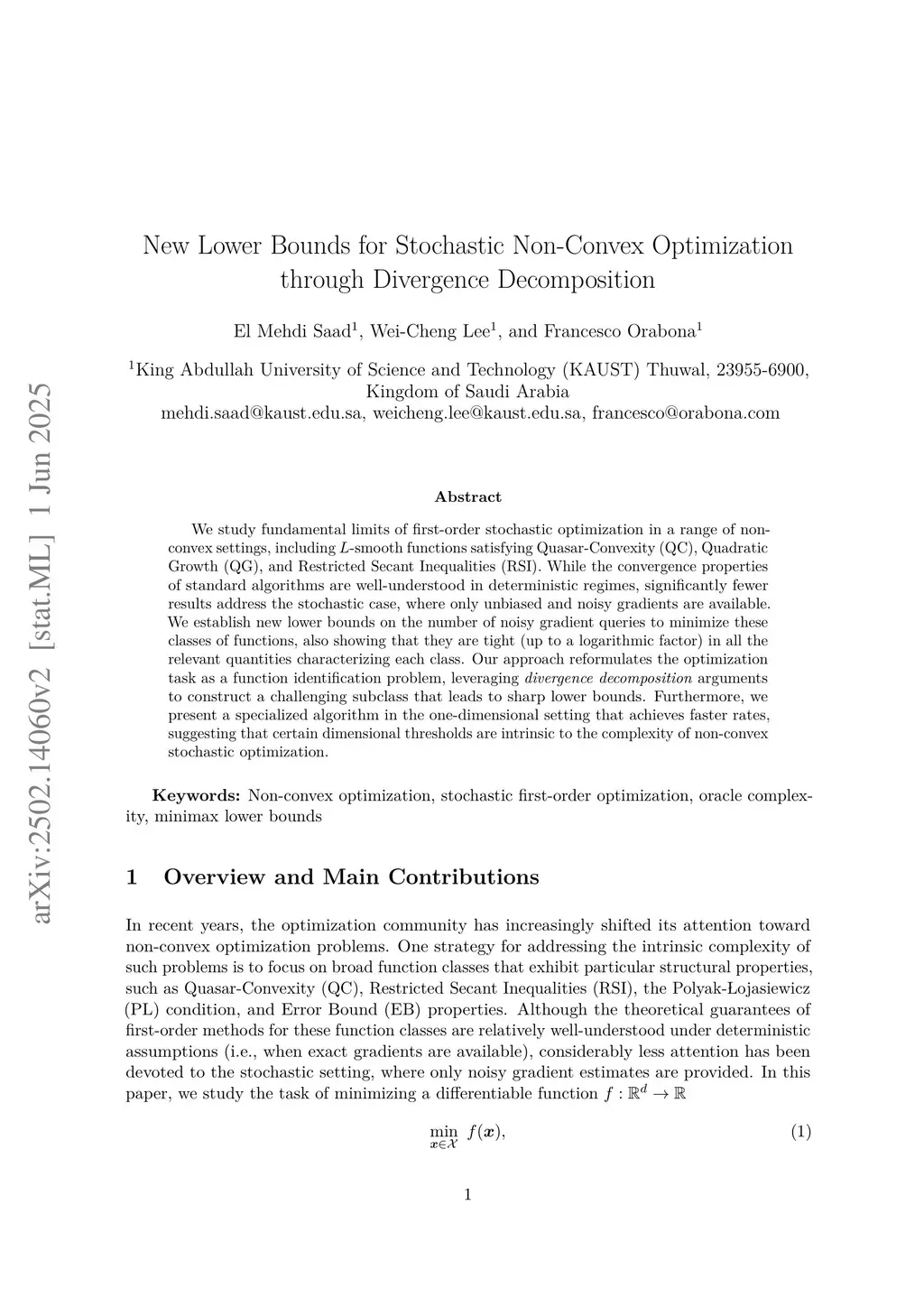 New Lower Bounds for Stochastic Non-Convex Optimization through Divergence Decomposition