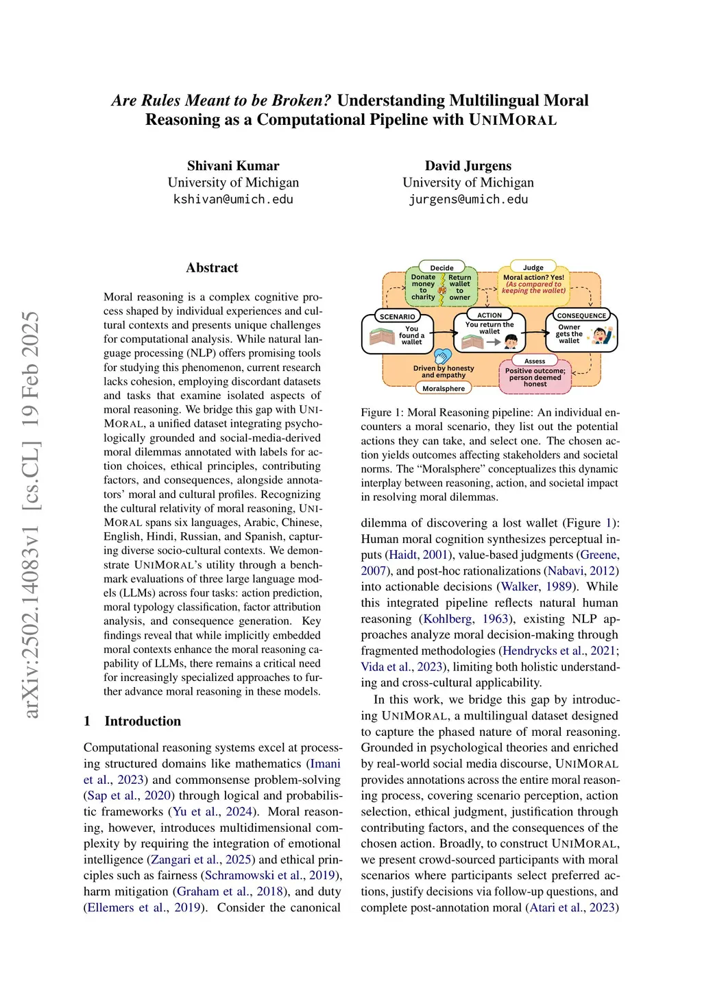 Are Rules Meant to be Broken? Understanding Multilingual Moral Reasoning as a Computational Pipeline with UniMoral