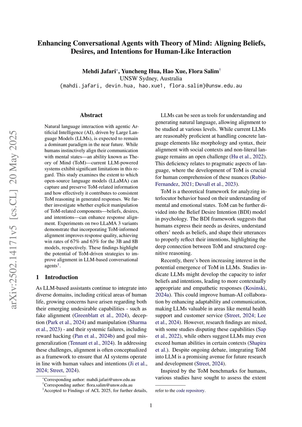 Enhancing Conversational Agents with Theory of Mind: Aligning Beliefs, Desires, and Intentions for Human-Like Interaction