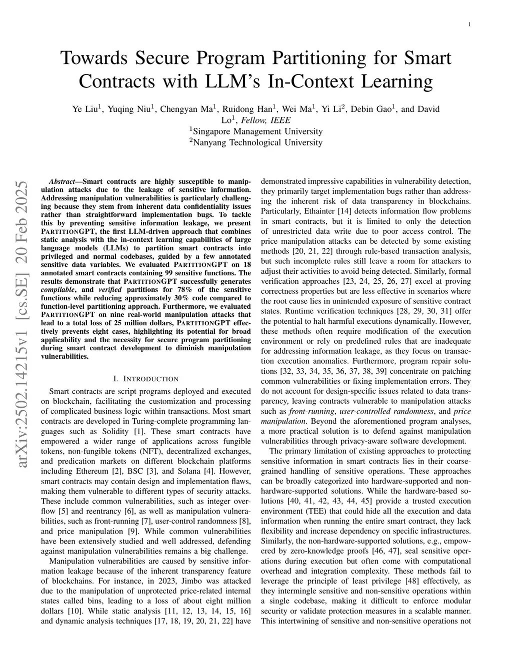 Towards Secure Program Partitioning for Smart Contracts with LLM's In-Context Learning