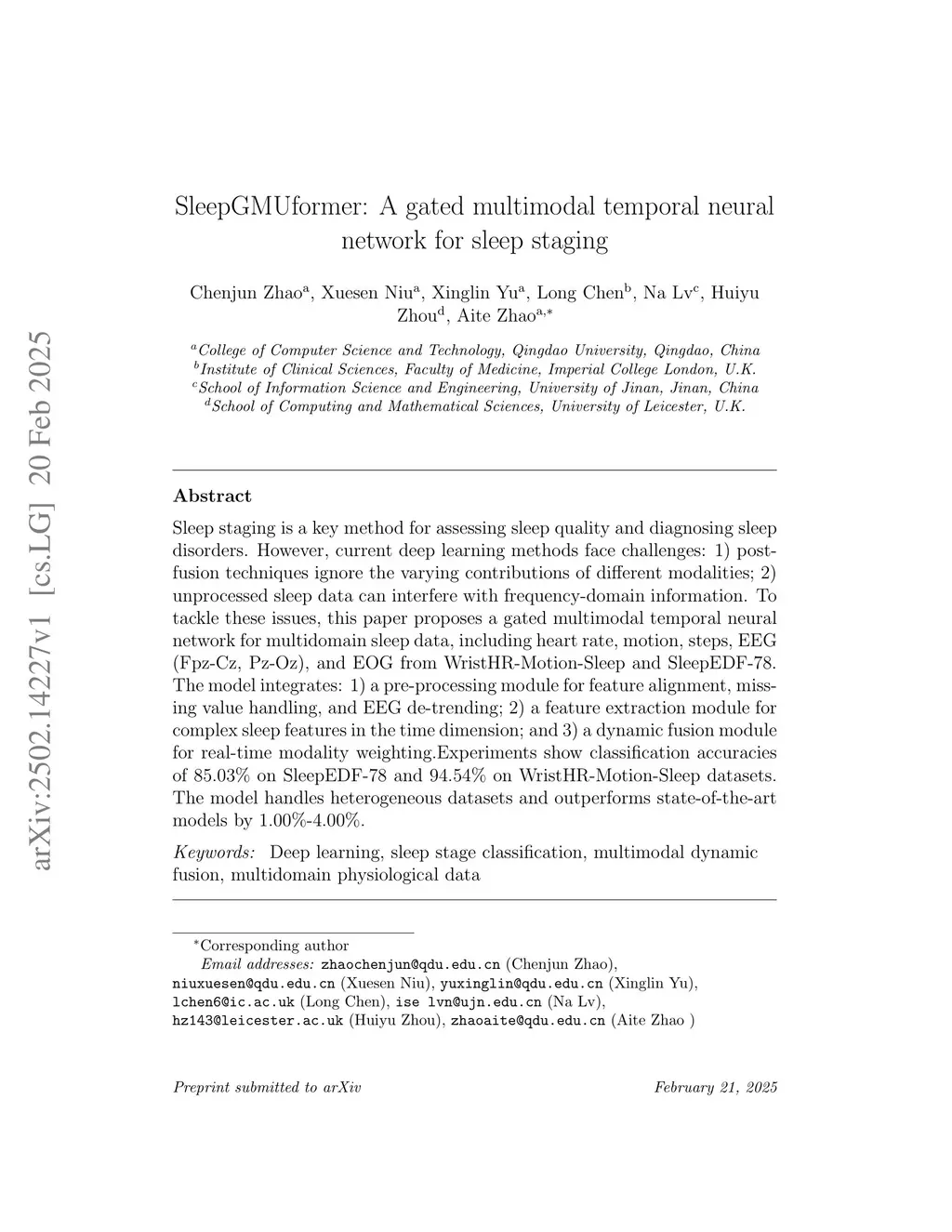 SleepGMUformer: A gated multimodal temporal neural network for sleep staging