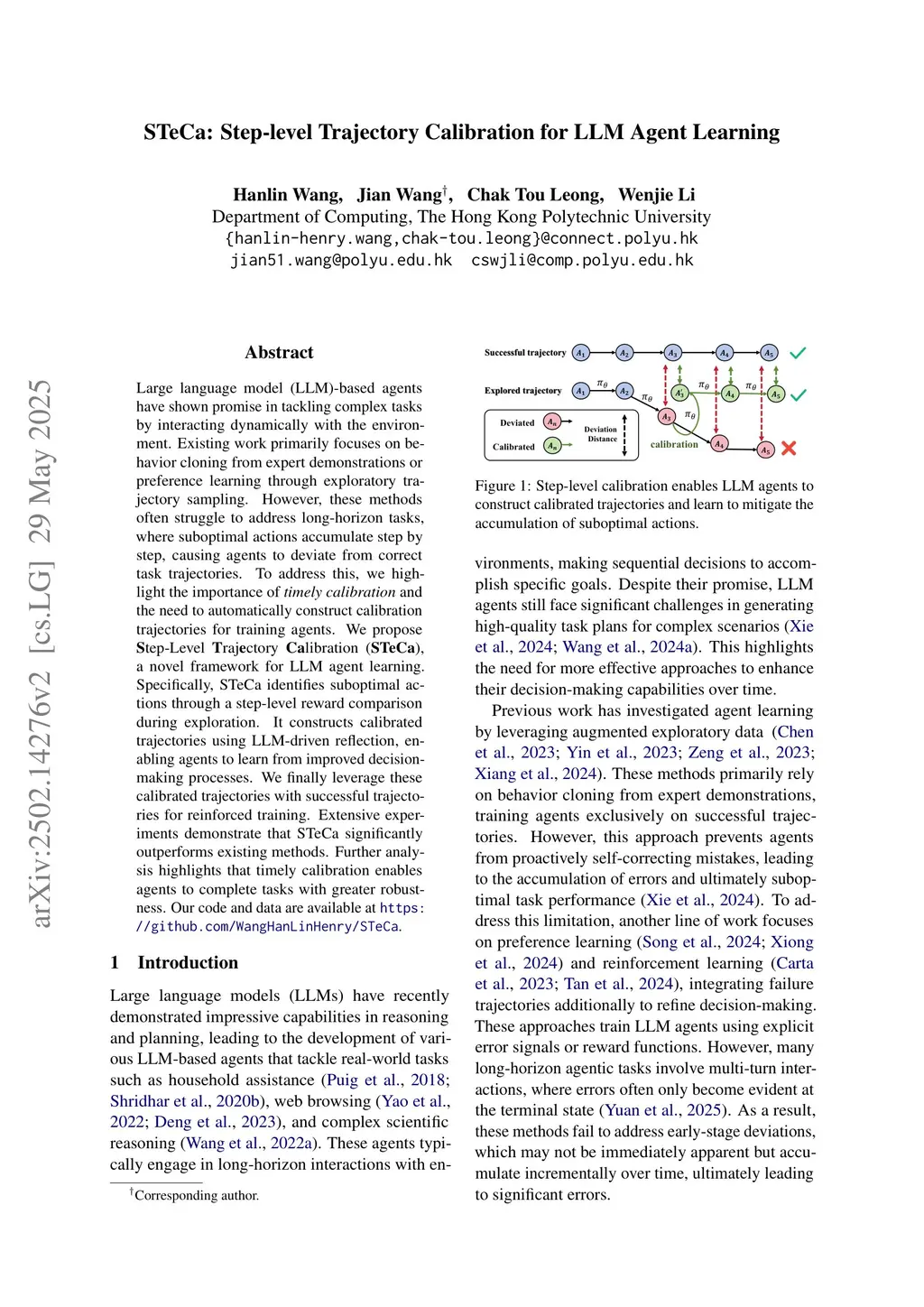 STeCa: Step-level Trajectory Calibration for LLM Agent Learning