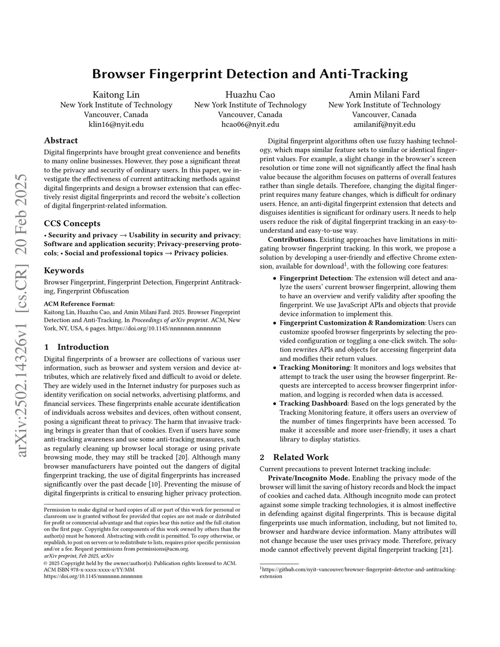 Digital fingerprints have brought great convenience and benefits to many online businesses. However, they pose a significant threat to the privacy and security of ordinary users. In this paper, we investigate the effectiveness of current anti-tracking methods against digital fingerprints and design a browser extension that can effectively resist digital fingerprints and record the website's collection of digital fingerprint-related information.