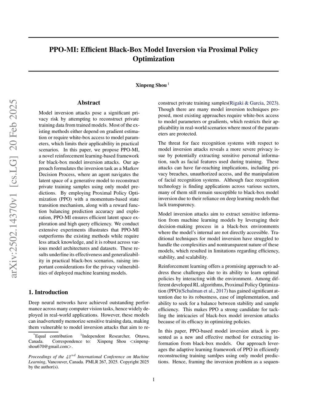 PPO-MI: Efficient Black-Box Model Inversion via Proximal Policy Optimization