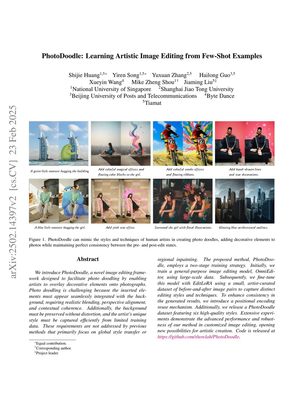 PhotoDoodle: Learning Artistic Image Editing from Few-Shot Pairwise Data