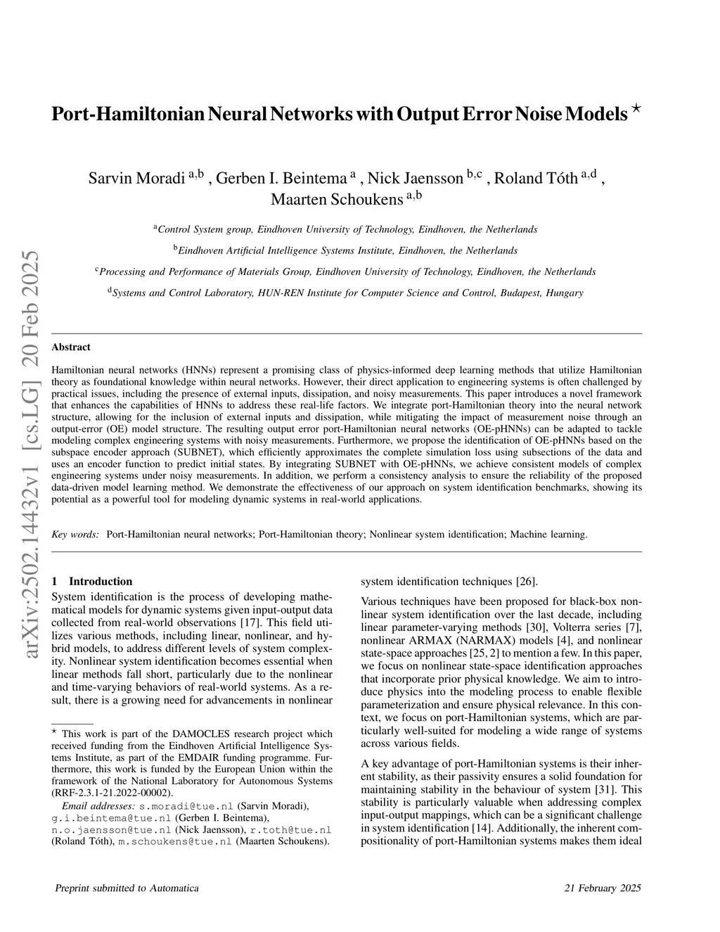 Port-Hamiltonian Neural Networks with Output Error Noise Models
