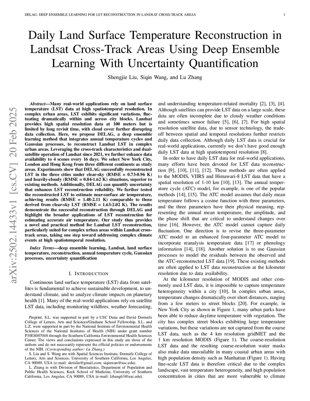 Daily Land Surface Temperature Reconstruction in Landsat Cross-Track Areas Using Deep Ensemble Learning With Uncertainty Quantification