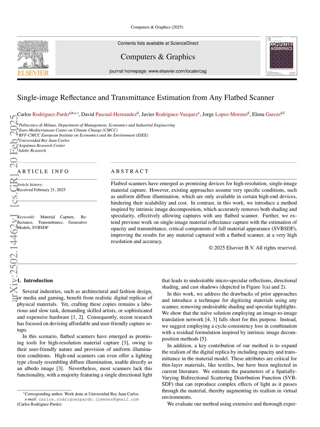 Flatbed scanners have emerged as promising devices for high-resolution, single-image material capture. However, existing approaches assume very specific conditions, such as uniform diffuse illumination, which are only available in certain high-end devices, hindering their scalability and cost. In contrast, in this work, we introduce a method inspired by intrinsic image decomposition, which accurately removes both shading and specularity, effectively allowing captures with any flatbed scanner. Further, we extend previous work on single-image material reflectance capture with the estimation of opacity and transmittance, critical components of full material appearance (SVBSDF), improving the results for any material captured with a flatbed scanner, at a very high resolution and accuracy