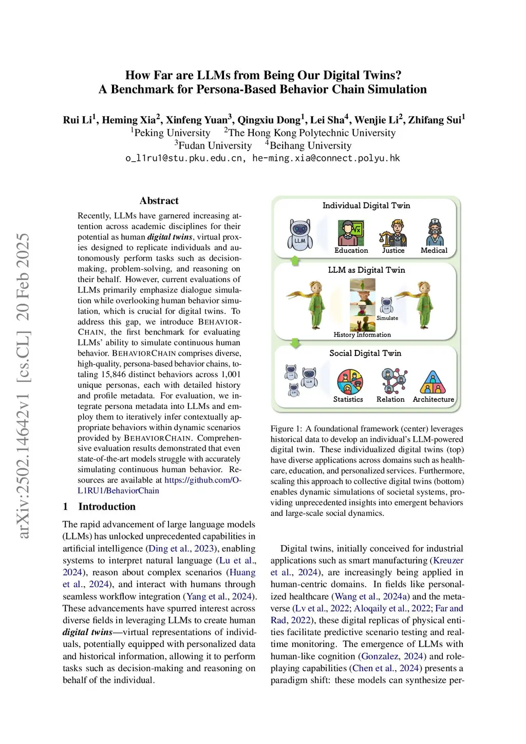 How Far are LLMs from Being Our Digital Twins? A Benchmark for Persona-Based Behavior Chain Simulation
