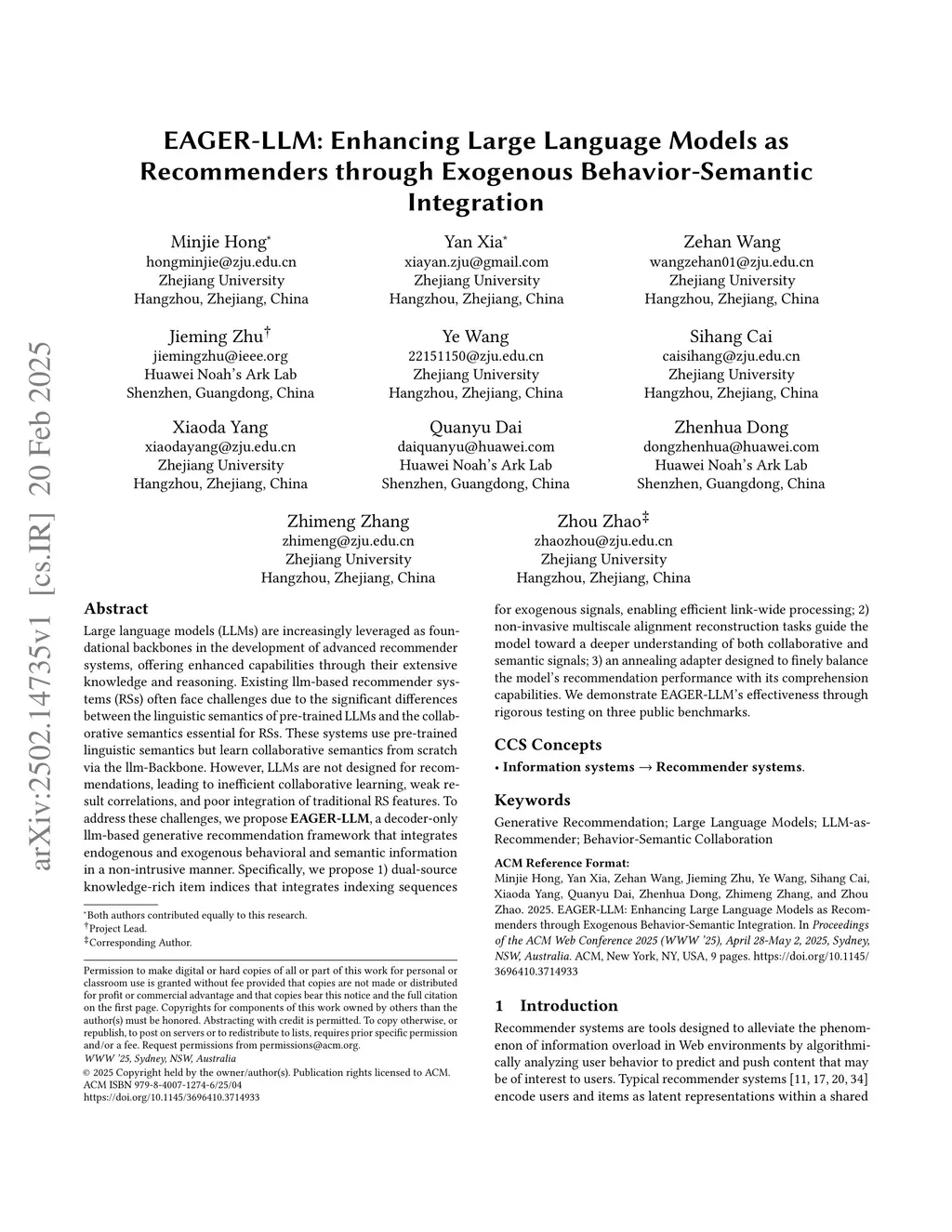 EAGER-LLM: Enhancing Large Language Models as Recommenders through Exogenous Behavior-Semantic Integration