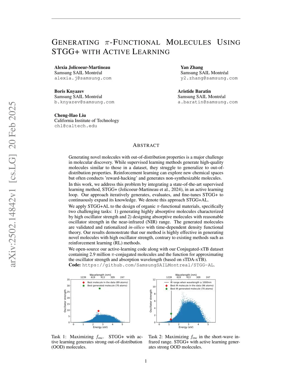 Generating -Functional Molecules Using STGG+ with Active Learning