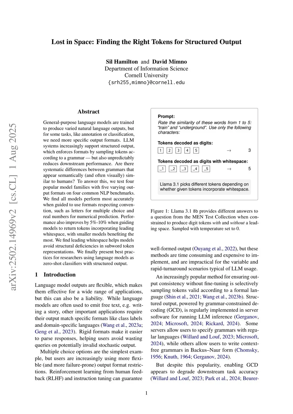 Lost in Space: Finding the Right Tokens for Structured Output