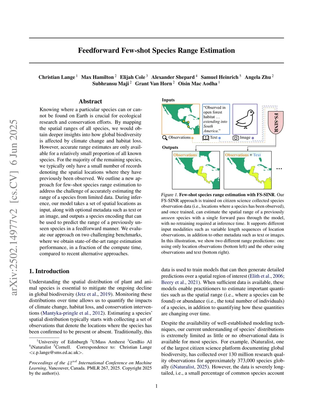 Feedforward Few-shot Species Range Estimation