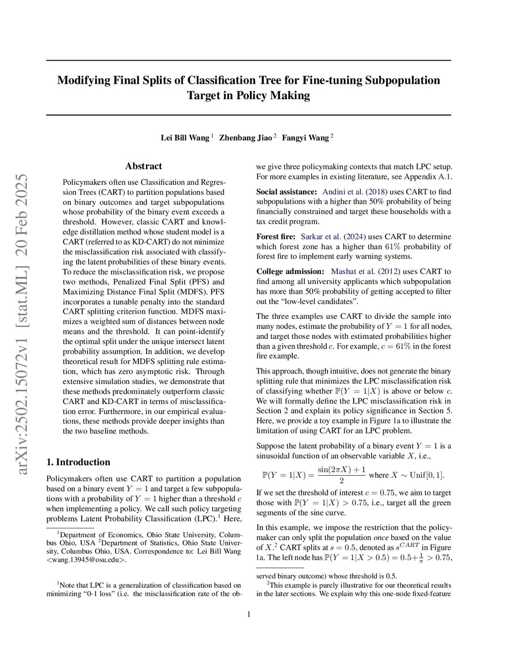 Policymakers often use recursive binary split rules to partition populations based on binary outcomes and target subpopulations whose probability of the binary event exceeds a threshold. We call such problems Latent Probability Classification (LPC). Practitioners typically employ Classification and Regression Trees (CART) for LPC. We prove that in the context of LPC, classic CART and the knowledge distillation method, whose student model is a CART (referred to as KD-CART), are suboptimal. We propose Maximizing Distance Final Split (MDFS), which generates split rules that strictly dominate CART/KD-CART under the unique intersect assumption. MDFS identifies the unique best split rule, is consistent, and targets more vulnerable subpopulations than CART/KD-CART. To relax the unique intersect assumption, we additionally propose Penalized Final Split (PFS) and weighted Empirical risk Final Split (wEFS). Through extensive simulation studies, we demonstrate that the proposed methods predominantly outperform CART/KD-CART. When applied to real-world datasets, MDFS generates policies that target more vulnerable subpopulations than the CART/KD-CART.