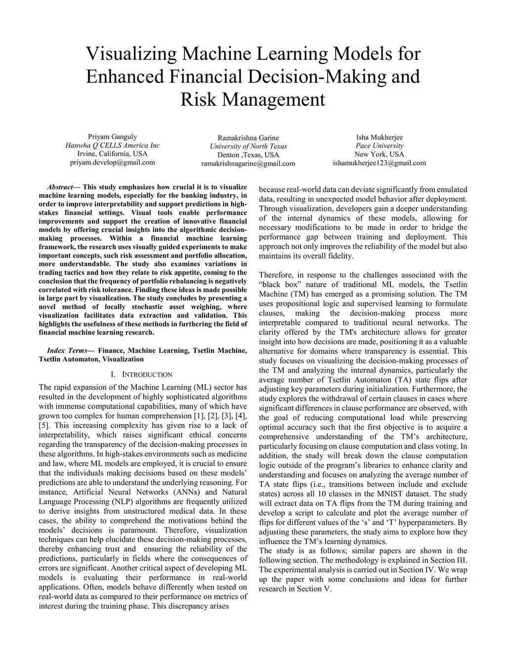 Visualizing Machine Learning Models for Enhanced Financial Decision-Making and Risk Management