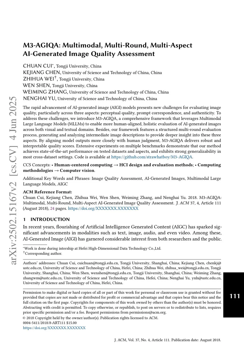 The rapid advancement of AI-generated image (AIGI) models presents new challenges for evaluating image quality, particularly across three aspects: perceptual quality, prompt correspondence, and authenticity. To address these challenges, we introduce M3-AGIQA, a comprehensive framework that leverages Multimodal Large Language Models (MLLMs) to enable more human-aligned, holistic evaluation of AI-generated images across both visual and textual domains. Besides, our framework features a structured multi-round evaluation process, generating and analyzing intermediate image descriptions to provide deeper insight into these three aspects. By aligning model outputs more closely with human judgment, M3-AGIQA delivers robust and interpretable quality scores. Extensive experiments on multiple benchmarks demonstrate that our method achieves state-of-the-art performance on tested datasets and aspects, and exhibits strong generalizability in most cross-dataset settings. Code is available atthis https URL.