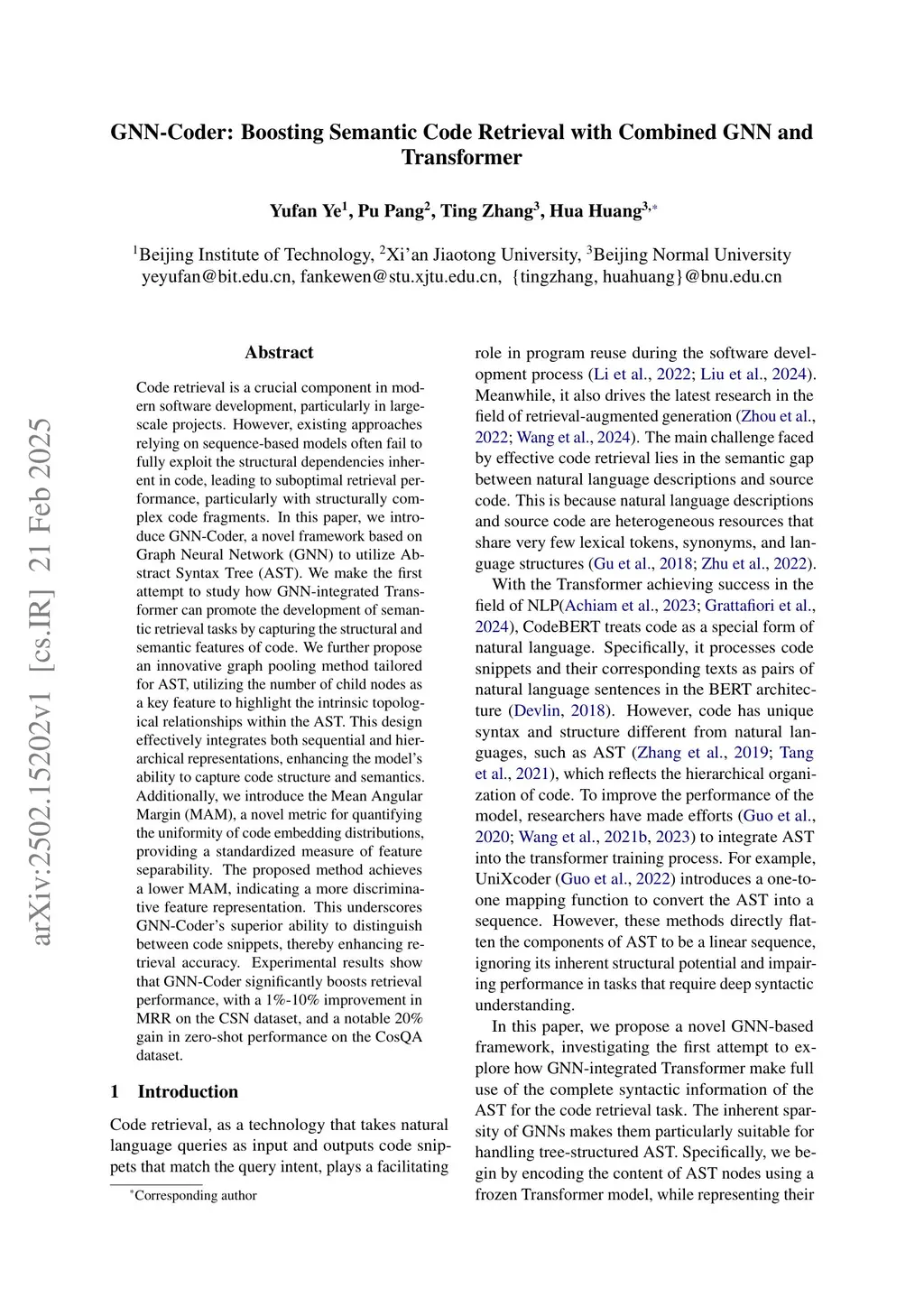 Code retrieval is a crucial component in modern software development, particularly in large-scale projects. However, existing approaches relying on sequence-based models often fail to fully exploit the structural dependencies inherent in code, leading to suboptimal retrieval performance, particularly with structurally complex code fragments. In this paper, we introduce GNN-Coder, a novel framework based on Graph Neural Network (GNN) to utilize Abstract Syntax Tree (AST). We make the first attempt to study how GNN-integrated Transformer can promote the development of semantic retrieval tasks by capturing the structural and semantic features of code. We further propose an innovative graph pooling method tailored for AST, utilizing the number of child nodes as a key feature to highlight the intrinsic topological relationships within the AST. This design effectively integrates both sequential and hierarchical representations, enhancing the model's ability to capture code structure and semantics. Additionally, we introduce the Mean Angular Margin (MAM), a novel metric for quantifying the uniformity of code embedding distributions, providing a standardized measure of feature separability. The proposed method achieves a lower MAM, indicating a more discriminative feature representation. This underscores GNN-Coder's superior ability to distinguish between code snippets, thereby enhancing retrieval accuracy. Experimental results show that GNN-Coder significantly boosts retrieval performance, with a 1\%-10\% improvement in MRR on the CSN dataset, and a notable 20\% gain in zero-shot performance on the CosQA dataset.