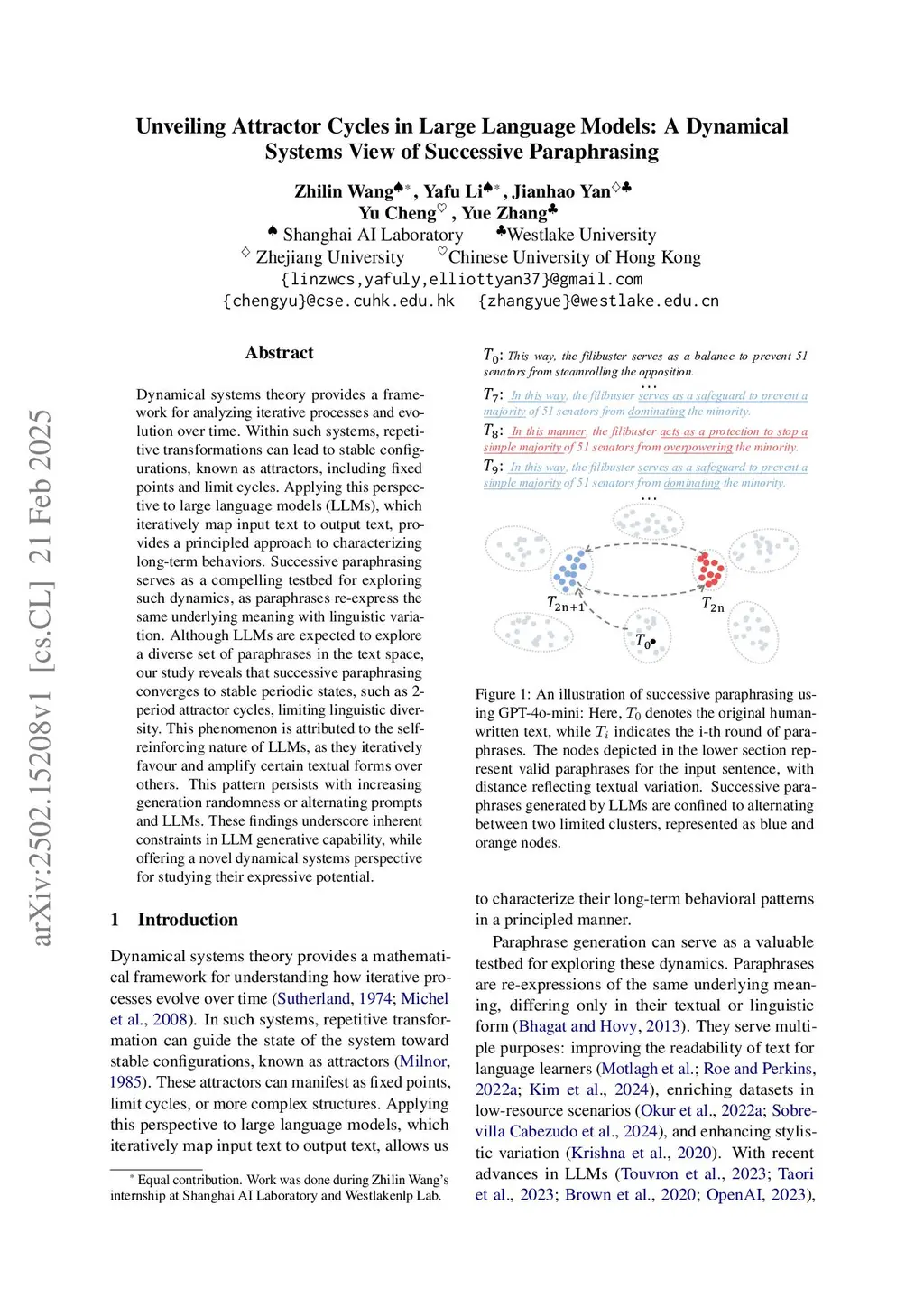 Unveiling Attractor Cycles in Large Language Models: A Dynamical Systems View of Successive Paraphrasing