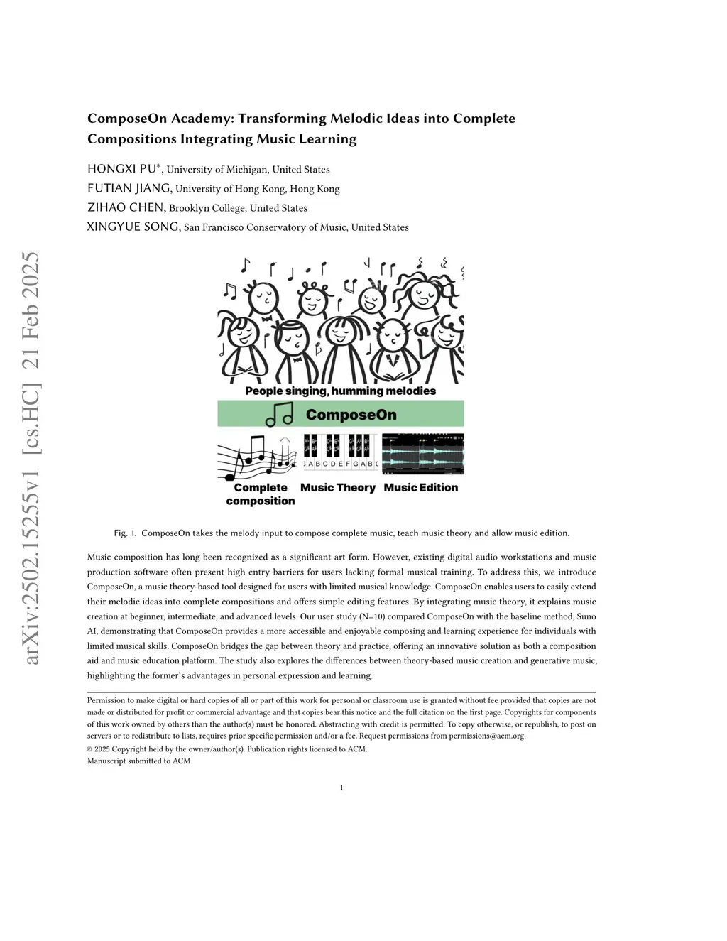 ComposeOn Academy: Transforming Melodic Ideas into Complete Compositions Integrating Music Learning