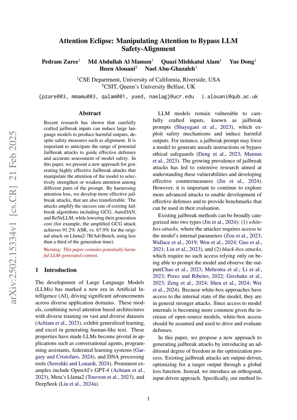Attention Eclipse: Manipulating Attention to Bypass LLM Safety-Alignment