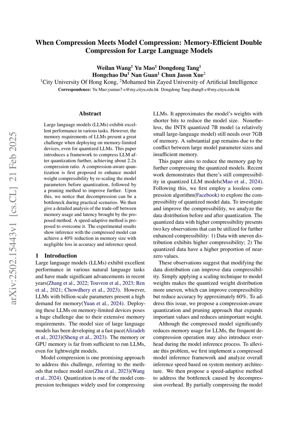 When Compression Meets Model Compression: Memory-Efficient Double Compression for Large Language Models
