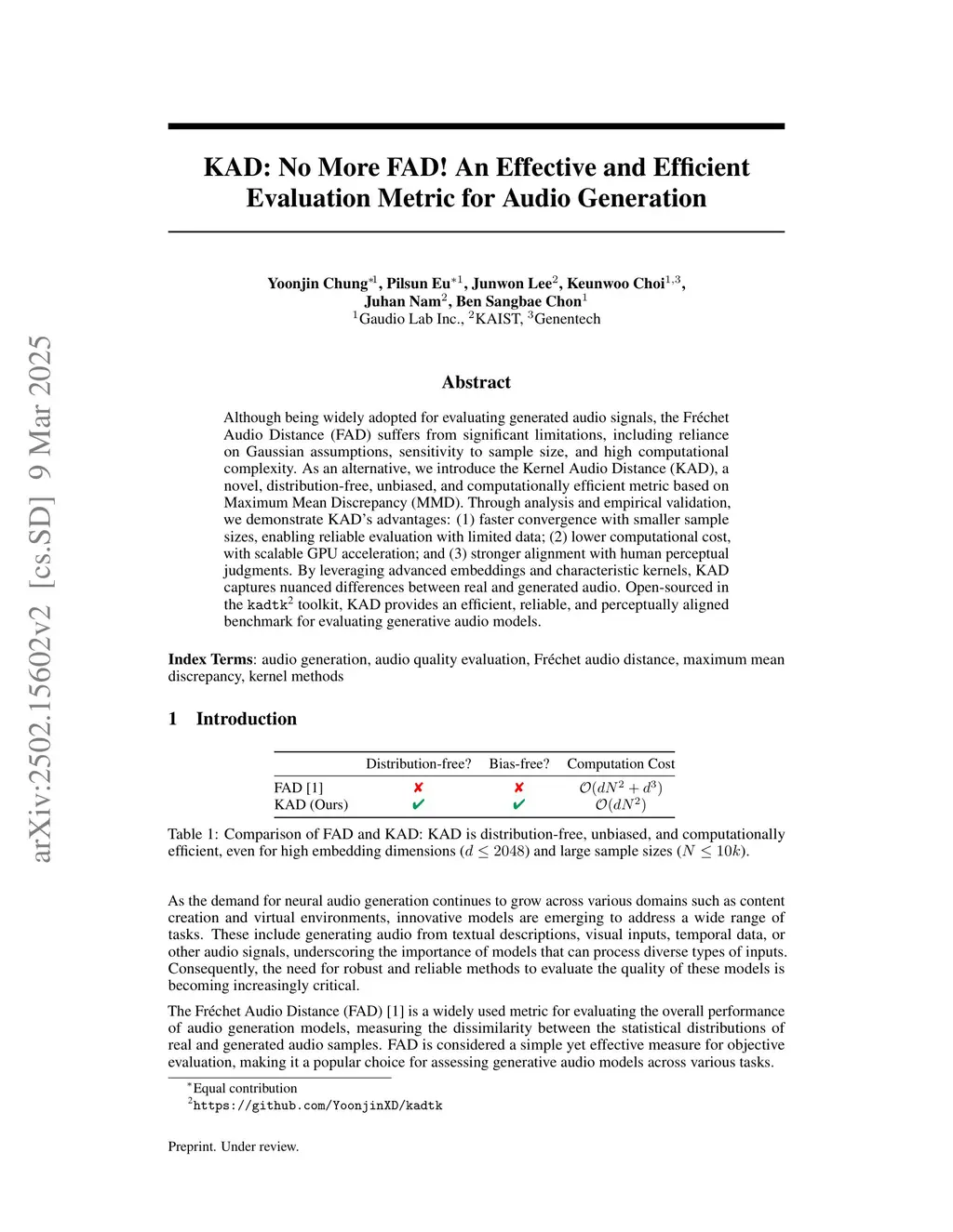 KAD: No More FAD! An Effective and Efficient Evaluation Metric for Audio Generation