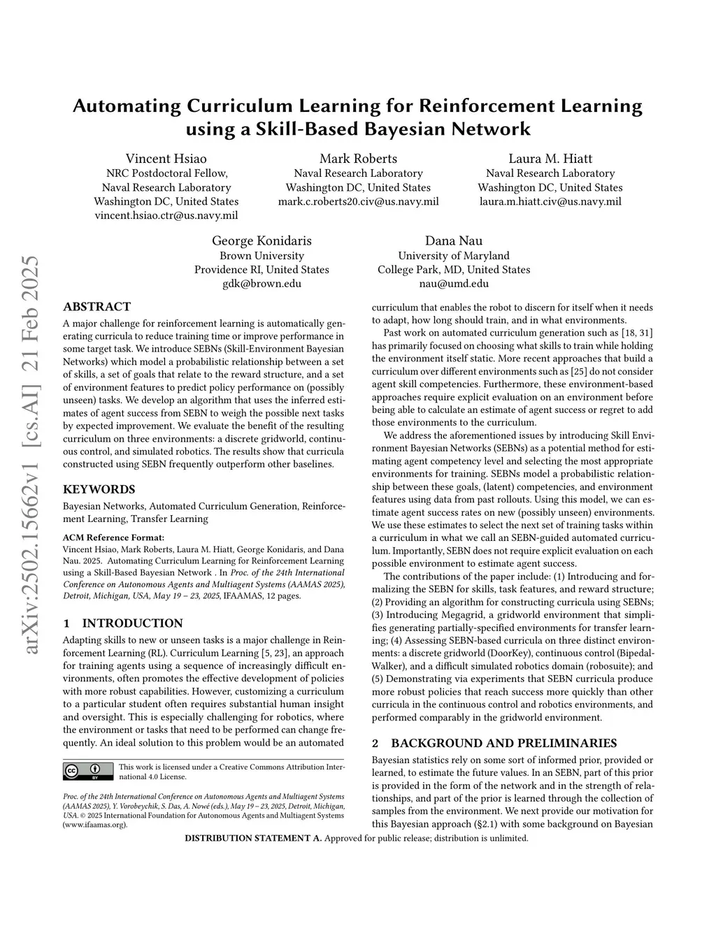 Automating Curriculum Learning for Reinforcement Learning using a Skill-Based Bayesian Network