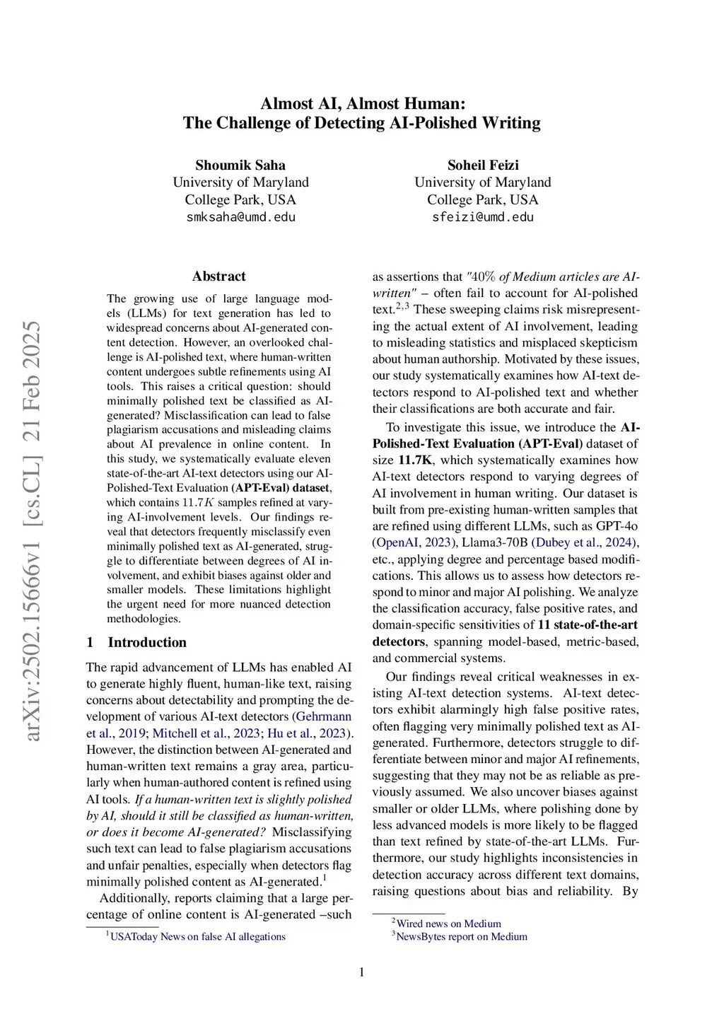 Almost AI, Almost Human: The Challenge of Detecting AI-Polished Writing