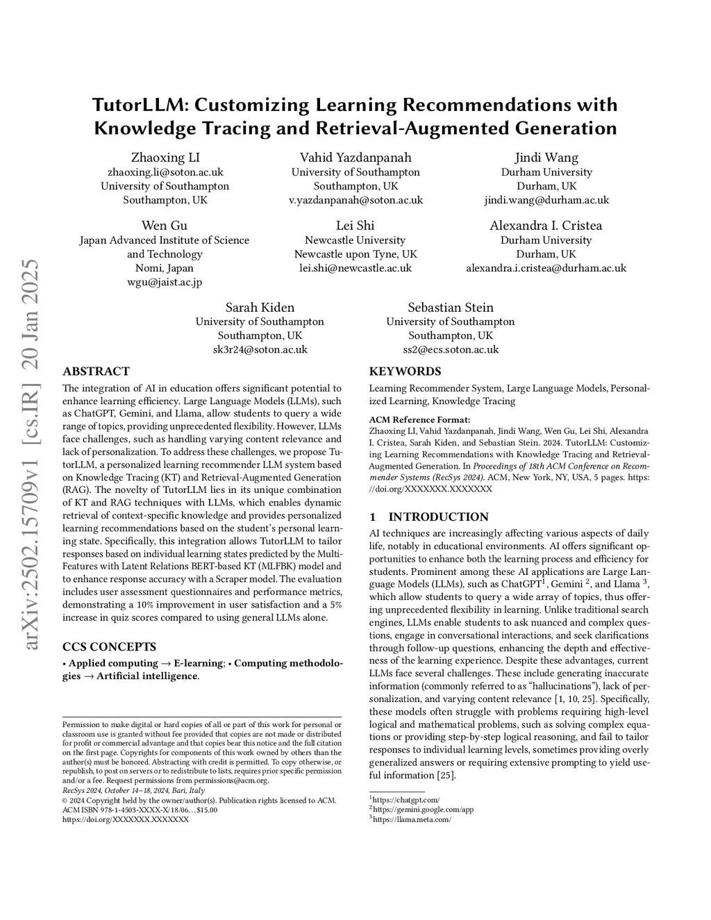 TutorLLM: Customizing Learning Recommendations with Knowledge Tracing and Retrieval-Augmented Generation