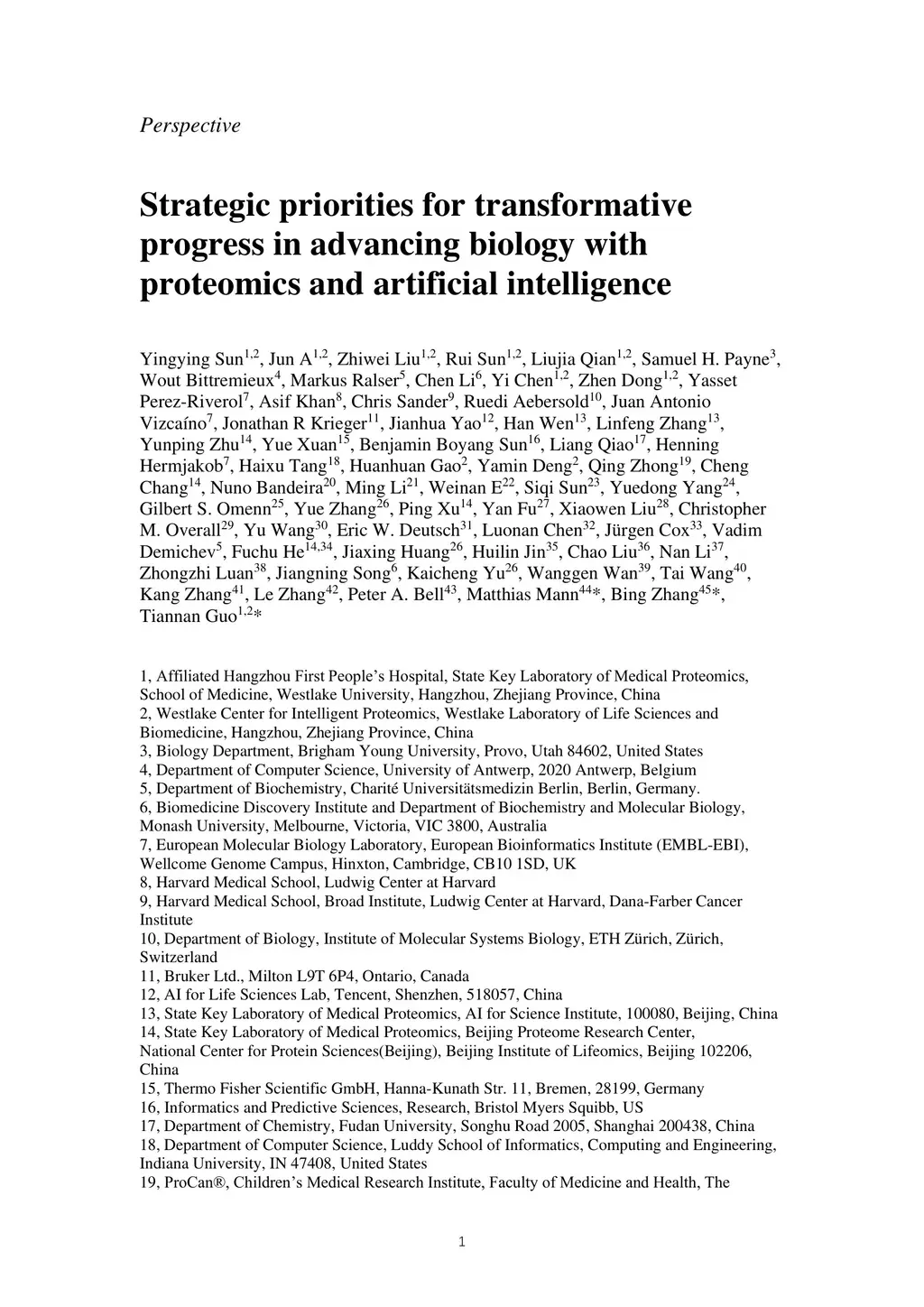 Strategic priorities for transformative progress in advancing biology with proteomics and artificial intelligence