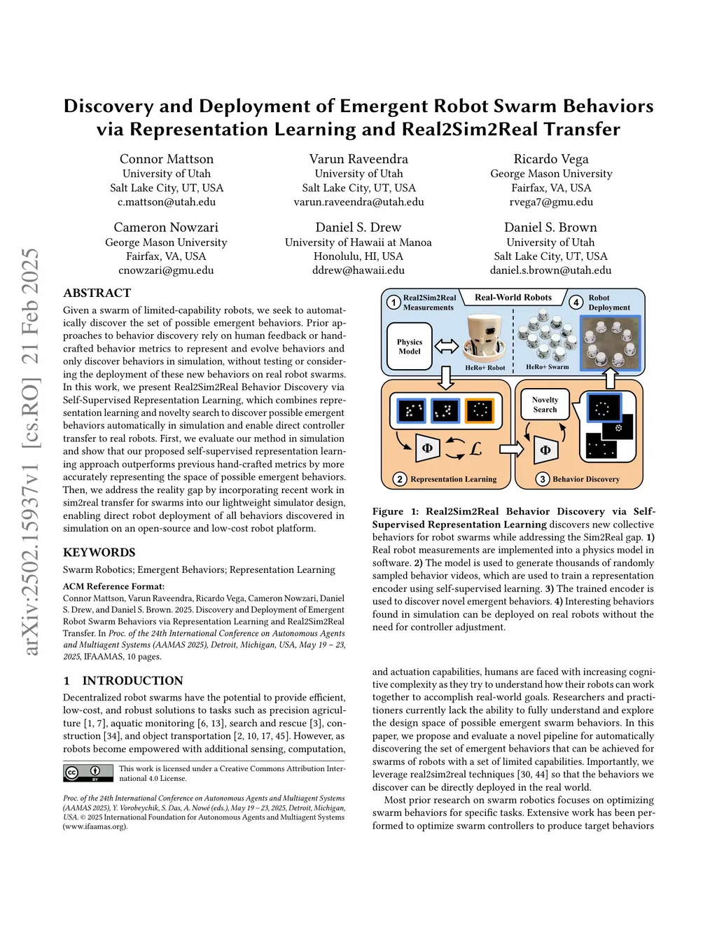 Discovery and Deployment of Emergent Robot Swarm Behaviors via Representation Learning and Real2Sim2Real Transfer