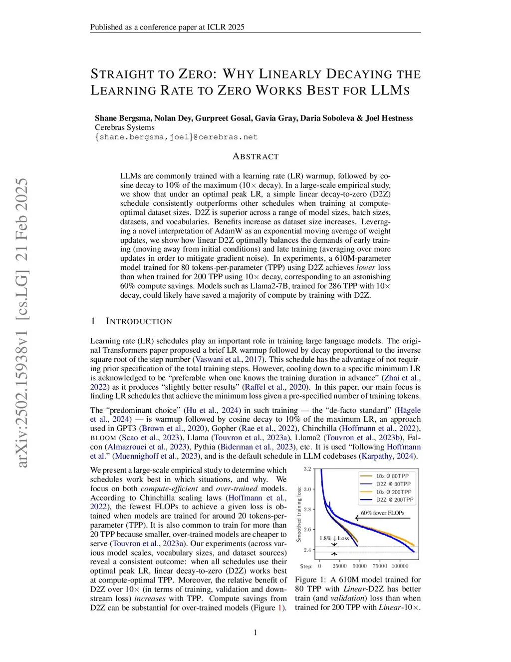 Straight to Zero: Why Linearly Decaying the Learning Rate to Zero Works Best for LLMs