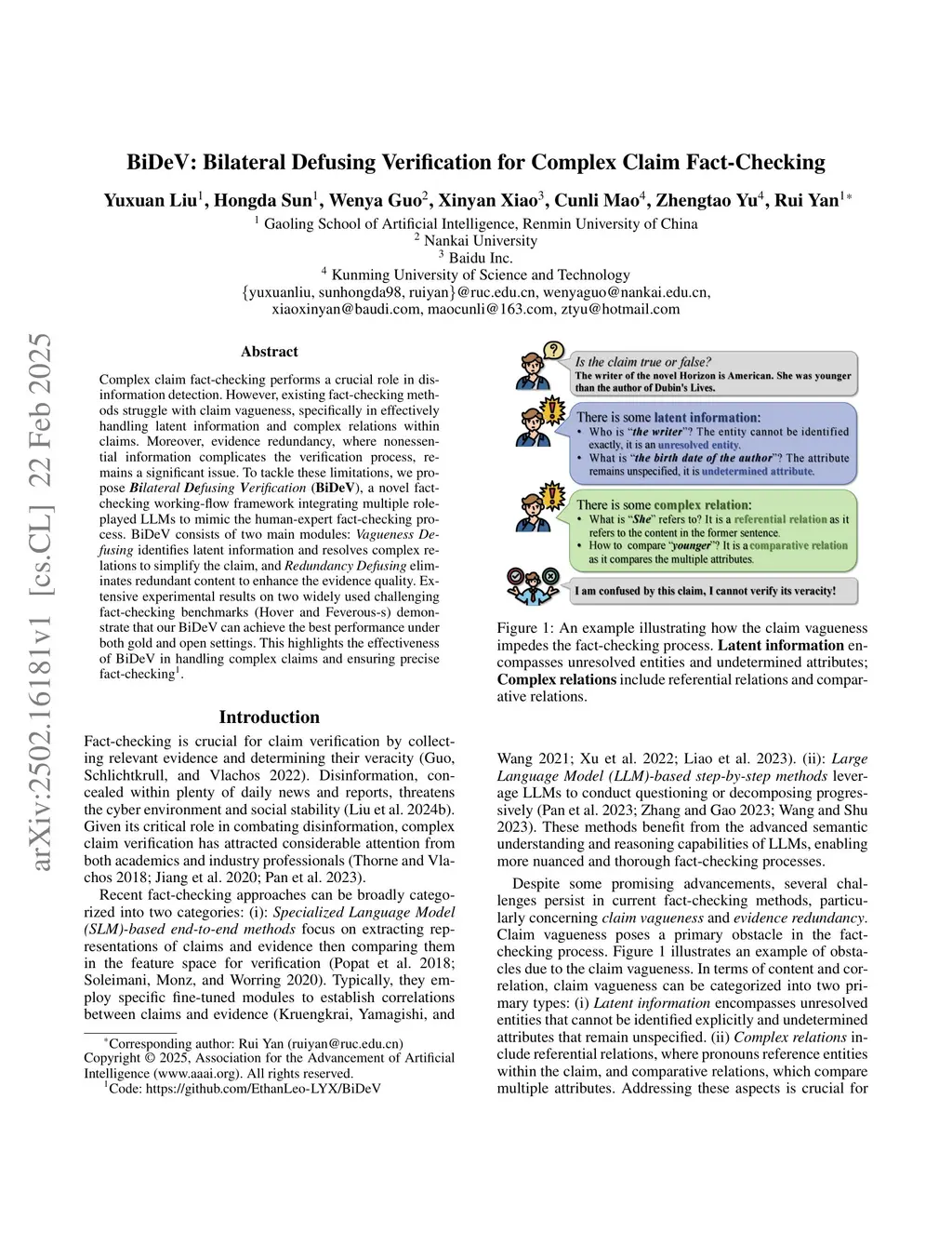 BiDeV: Bilateral Defusing Verification for Complex Claim Fact-Checking