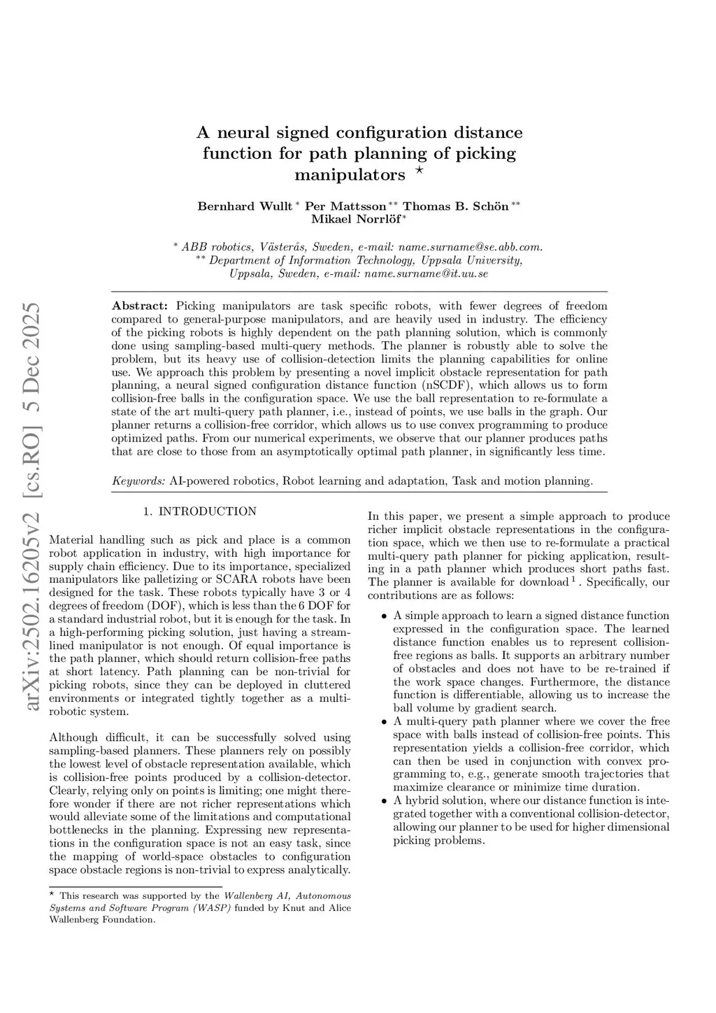 A neural signed configuration distance function for path planning of picking manipulators