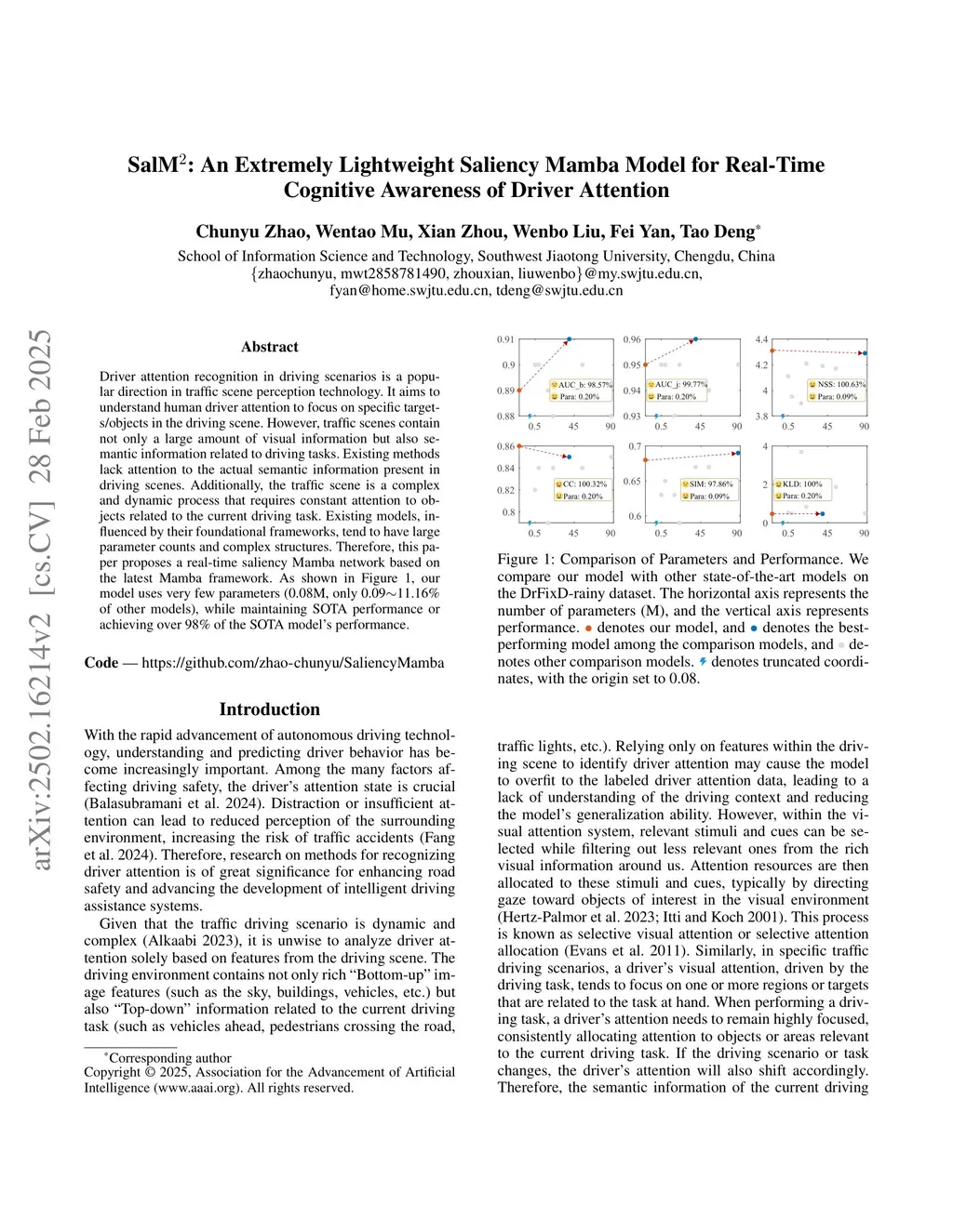 SalM: An Extremely Lightweight Saliency Mamba Model for Real-Time Cognitive Awareness of Driver Attention